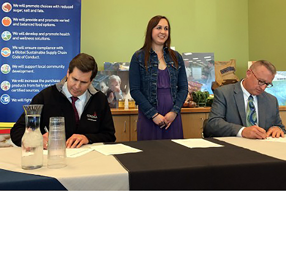 In a ceremony at the Boone Avenue Retail Center, Gonzaga President Thayne McCulloh and Chuck Faulkinberry, district manager for Sodexo, signed the commitment.