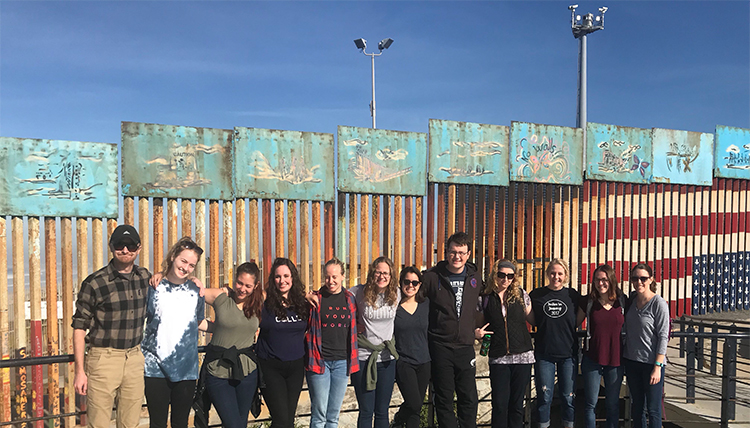 Organized by the Center for Community Engagement, students complete a one-credit course to gain a brief sociologically-informed political, economic, and cultural overview of the U.S./Mexico border. Then they gather in two teams, one headed for San Diego, California, and Tijuana, Mexico; the other for Tucson, Arizona, and Nogales, Mexico. At both locations, they meet with community leaders, non-profit and government agencies, as well as interact with and serve recently deported migrants.