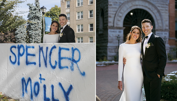 ’14 Molly Herman and ’14 Spencer Rosen met while studying abroad in Florence, Italy, and have since been back to visit GIF twice, including a stop during their Italian honeymoon. Their wedding photos were taken on campus, fulfilling Molly’s grand vision to have their wedding announcement painted on “the wall.”